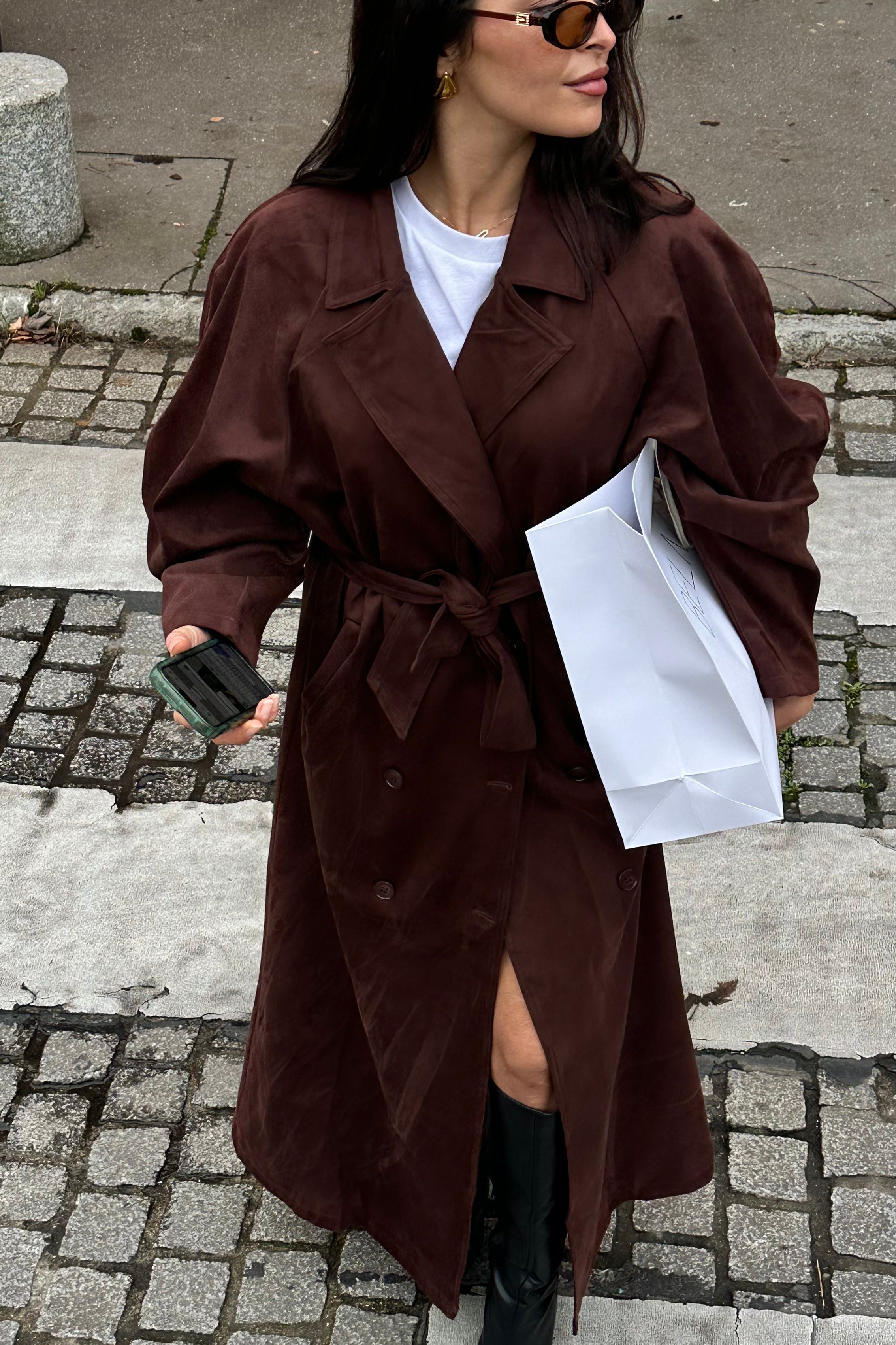 Trench long suédine marron