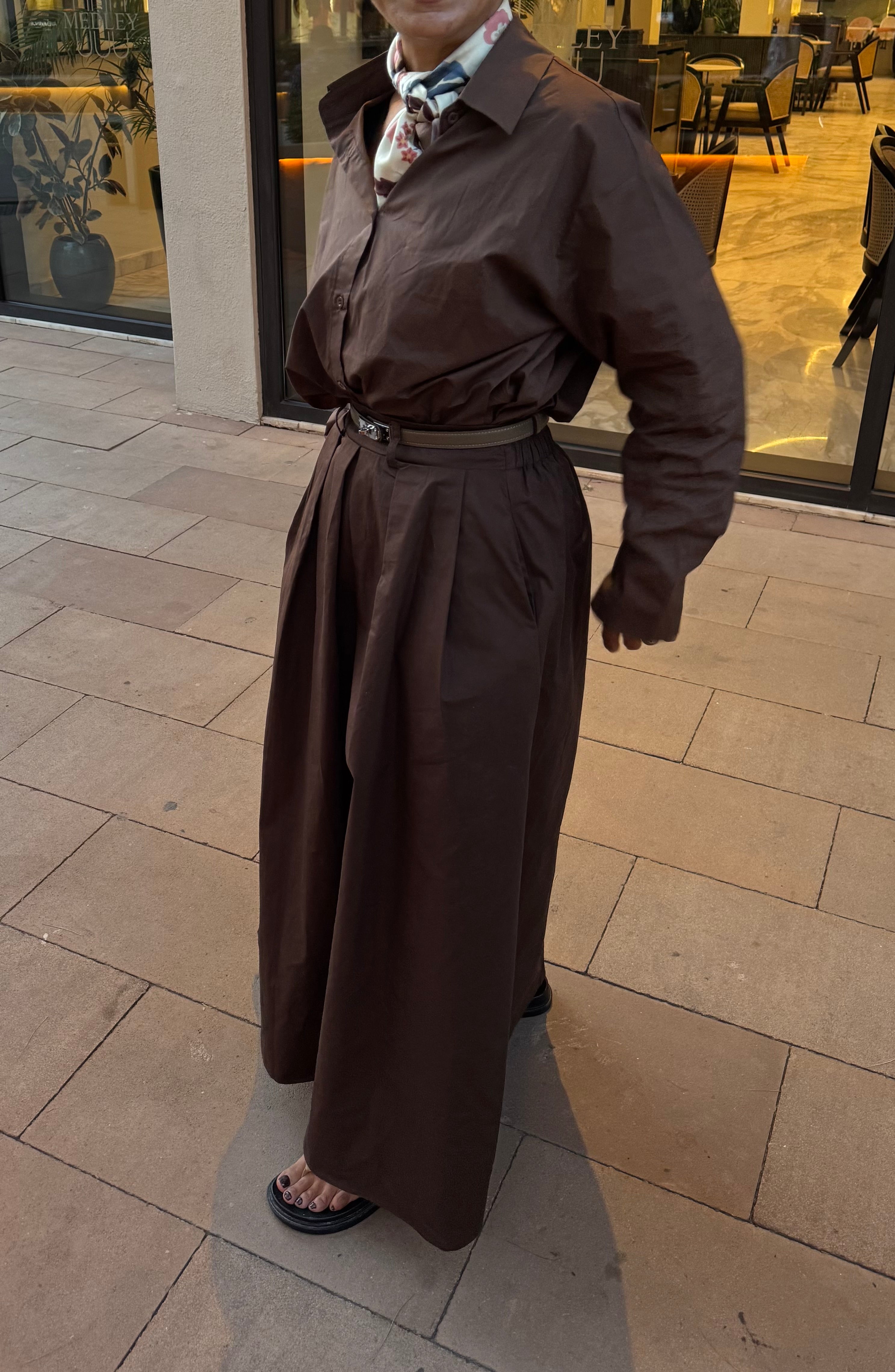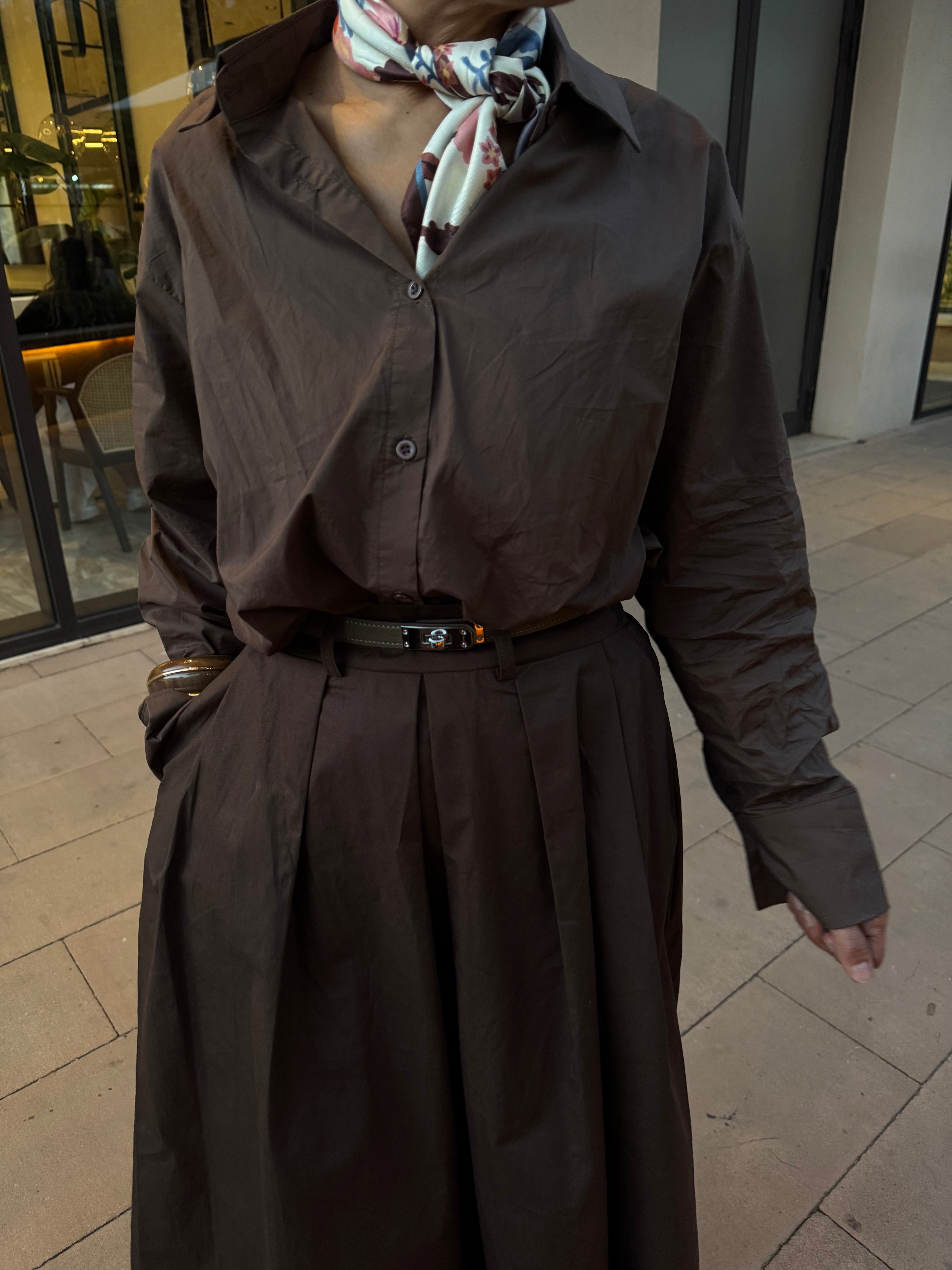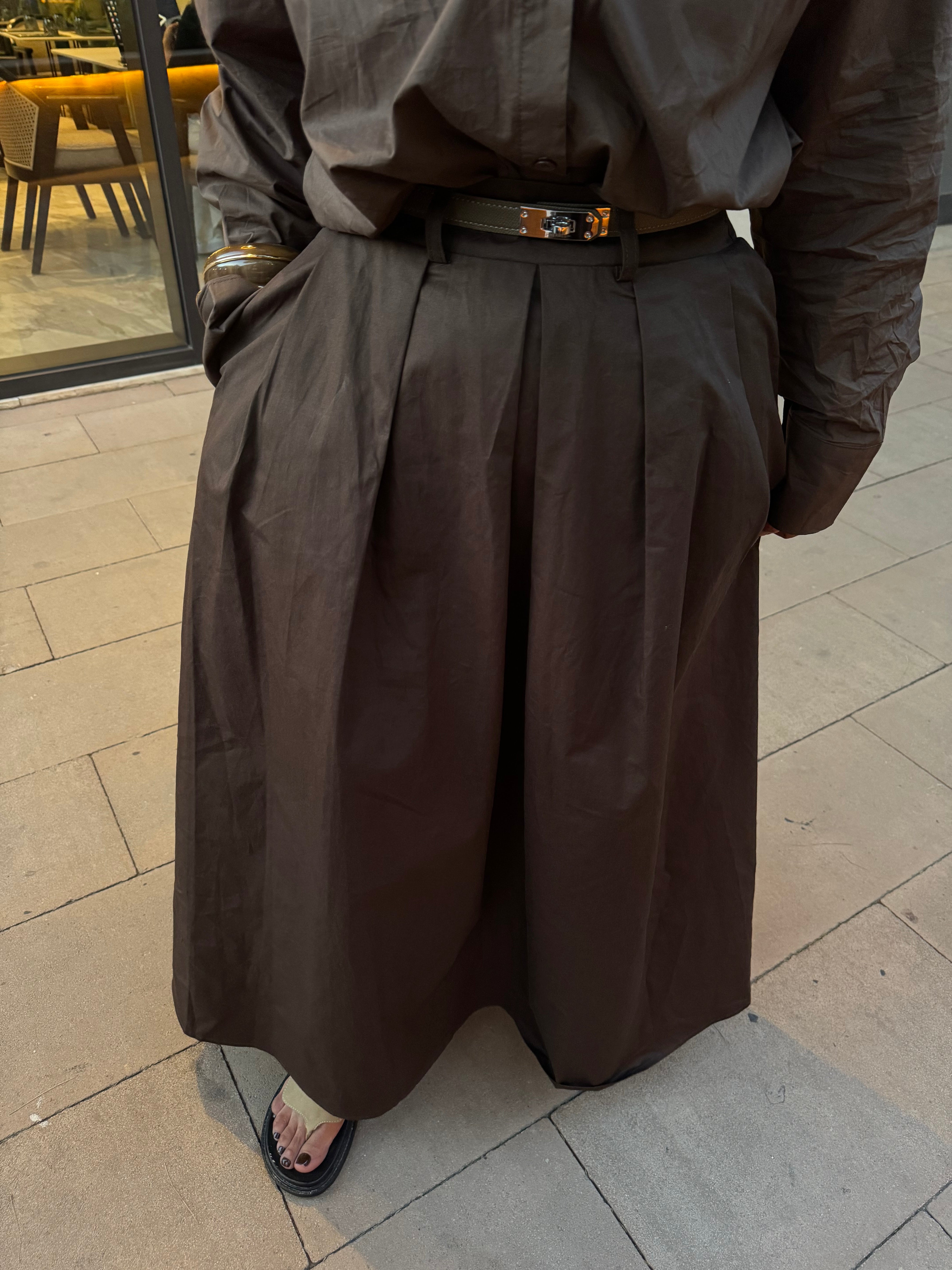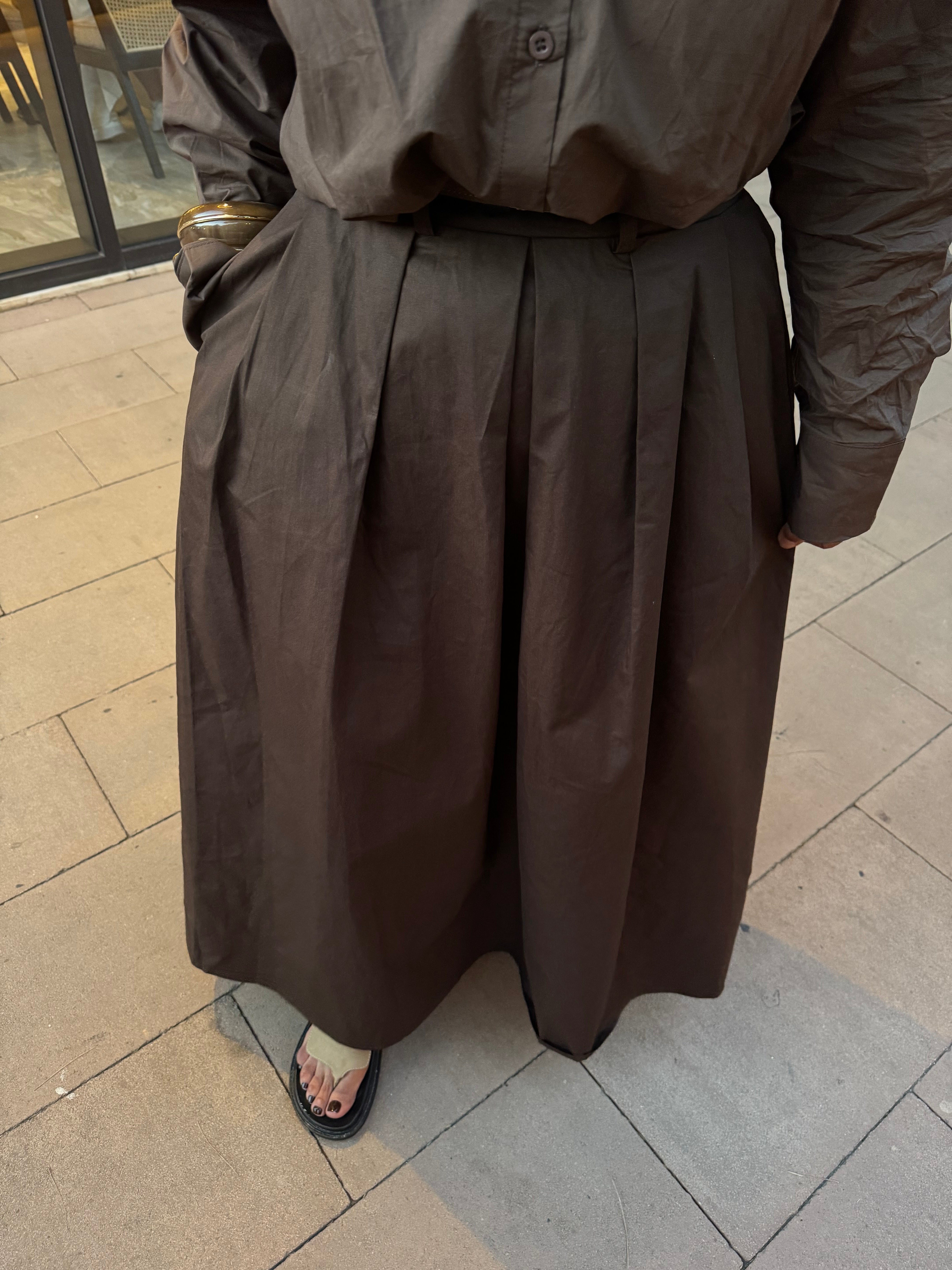 Jupe longue marron à plis